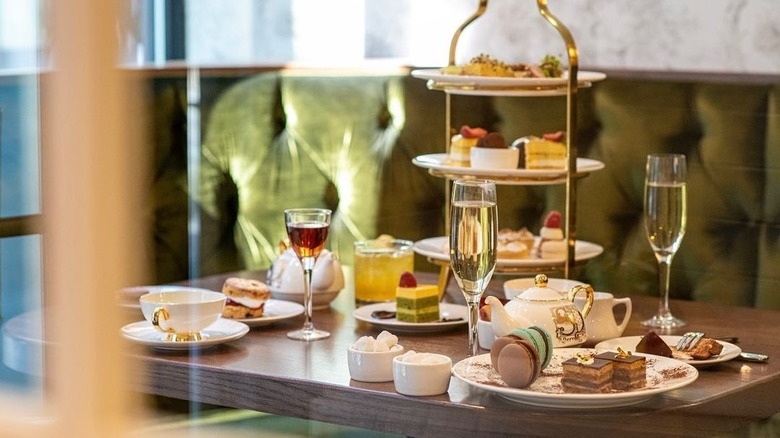 Its menu features classic selections from the British tea tradition, so you're sure to find a selection of scones to slather with clotted cream and lovely iterations of crustless finger sandwiches, like coronation chicken with vadouvan, crème fraiche, and sultana. And, of course, a delicate selection of cakes and the best flavors of macarons to top things off. There are countless teas from around the world on offer, as well as — to no surprise to anyone — a thoughtful curation of cocktails and wine to sip with your pinky out.