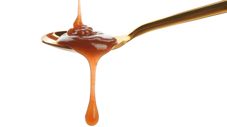 Like soufflés and hollandaise sauce, making caramel is one of those kitchen tasks that many people avoid due to pure and utter intimidation. We get it. Anytime a recipe calls for temperatures so precise that it requires a thermometer or involves words like "crystallization" or "beware of burns," the fear factor increases. If you're a fan of baking competition shows, surely you've seen contestants in tears over scorched pots of what was a vital element in their bake that they don't have time to redo. All of this might make you want to grab your wallet and keys and pick up a jar of ready-made caramel sauce.
