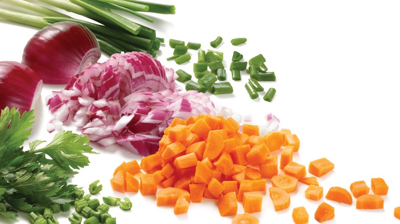 There's nothing more boring than a one-dimensional egg salad made with only soft ingredients. Don't get us wrong, boiled eggs and mayonnaise are a delicious pair, but a truly satisfying egg salad has to have a crisp component that balances the softness of the dish. Chopping up crunchy add-ins for your egg salad may keep you in the kitchen longer than you care to be, but it's a step worth taking so your dish isn't a uniform consistency.