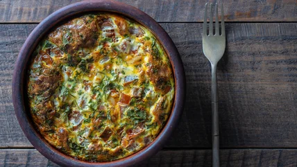 Your selection of dairy for the frittata can influence the dish's flavor and texture. Milk is a great option for a lighter, more delicate frittata. Whole milk is preferred since its higher fat content yields a creamier texture than skimmed or reduced-fat milk. For a richer and denser frittata, heavy cream or whipping cream is a great option, while half-and-half serves as an ideal milk-cream combination. When making your frittata, add the dairy after the eggs are beaten but before you add the fillings. This ensures that the dairy is evenly distributed throughout the mixture.