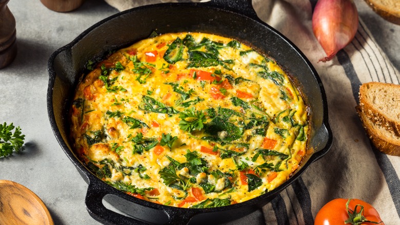 If you're a fan of savory egg dishes, then you've probably come across frittatas on your culinary journey. If not, a frittata is an open-faced dish made with eggs, milk, or cream and fillings like cheese. It may be cooked on the stove and finished under the broiler. It's perfect for a weekend brunch, a quick weeknight dinner, or even an impressive potluck contribution. While easy to make, there are some things you can do to turn an ordinary, easy-to-cook dish into something magnificent.