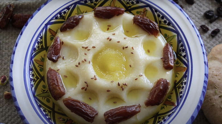 Keep in mind that Moroccan L'Assida is slightly different from other versions, as this porridge is made with fine-grind semolina couscous, while others, like the Tunisian variant, are made with ground zgougou (Aleppo pine nuts). However, Aseeda, a North African specialty, is more like a molded, sticky dough made with plain wheat flour and water and sweetened with date syrup rather than honey. Either way, if you're looking to experience one of the simpler pleasures of Moroccan cuisine, consider starting with this classic Eid dish.