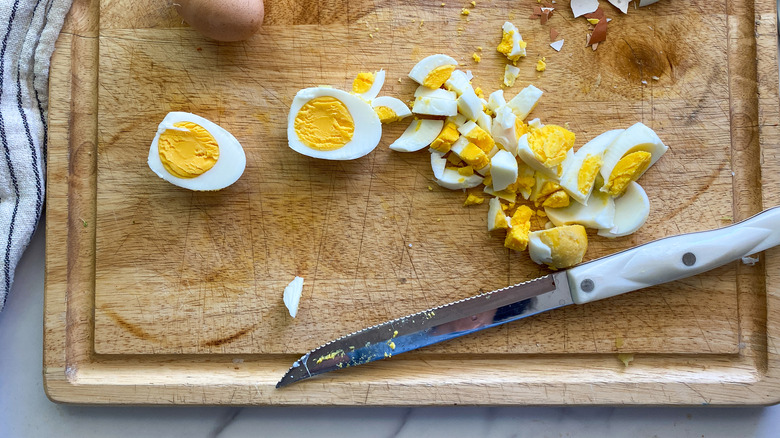 Chop the celery, potatoes, and eggs