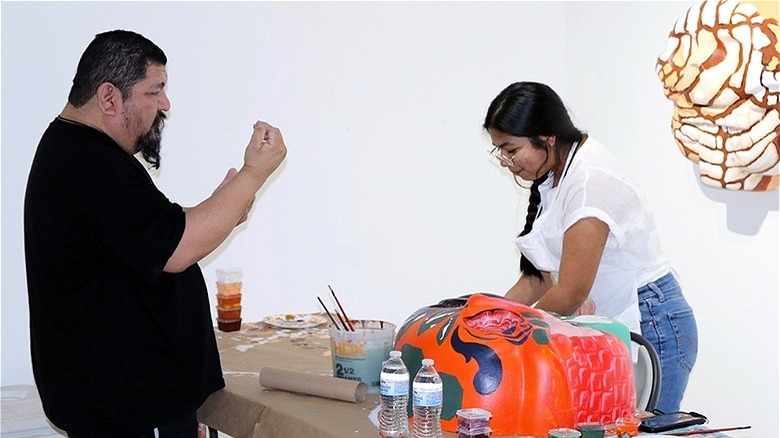 "I've always felt it's my responsibility to be able to juggle working as a visual artist and being out in the community, serving students," Rubio told San Antonio. Through his mural at Starbucks, which people enjoy as they sip their favorite drinks, he's once again done just that.