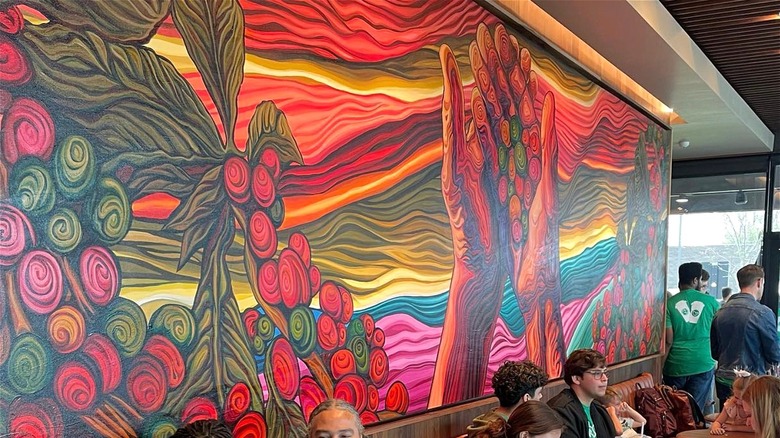 "Art has the power to connect people across cultures and to catalyze social good — and exposure to new artists can be a powerful way to foster that positive change," recognizes Vanity Fair. The murals that Starbucks commissions help build a sense of community and encourage local art scenes in the neighborhoods where the brand's branches are located. Starbucks is known for its local touches, including a piece of history that hangs in the chain's very first store.
