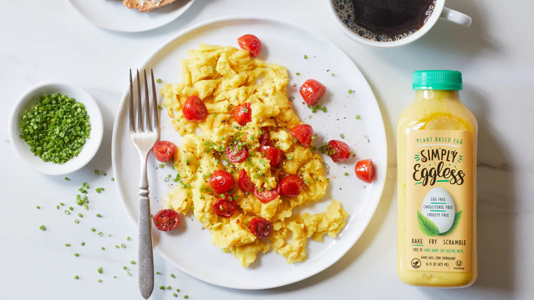 Focusing on their basic liquid egg alternative, however, the Simply Eggless option is unique in that each serving is infused with 3 grams of prebiotics. Also, containing just 20 milligrams of sodium, it's one of the few egg alternatives that have less sodium than a hen egg, per data from the USDA.