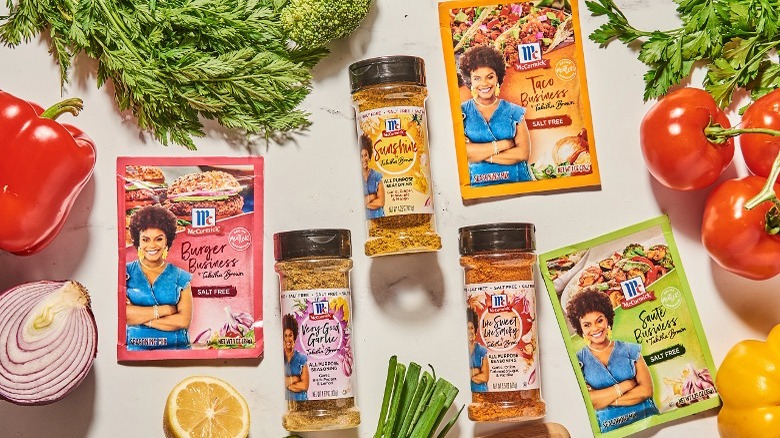 In 2021, Brown and McCormick collaborated on a spice blend called Sunshine Seasoning by Tabitha Brown that was intended to add fresh flavor to vegan or non-vegan dishes. Containing popular Caribbean spices and herbs, such as allspice, thyme, turmeric, cayenne pepper, mango, and pineapple, the limited-edition Sunshine Seasoning sold out 39 minutes after its release. McCormick then brought the spice blend to store shelves nationwide in June 2022.