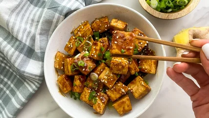 Wellness coach and recipe developer Miriam Hahn brings us this recipe and says, "I make a huge variety of dishes with tofu and this recipe is one of my favorites. The sauce is thick and flavorful and paired with the crispy tofu it's always a winner. You can throw together a quick dinner by serving this tofu over rice or ramen noodles with whatever vegetables you have on hand. Once you try this recipe, it will definitely become a new favorite at your house."