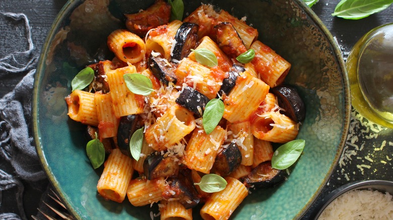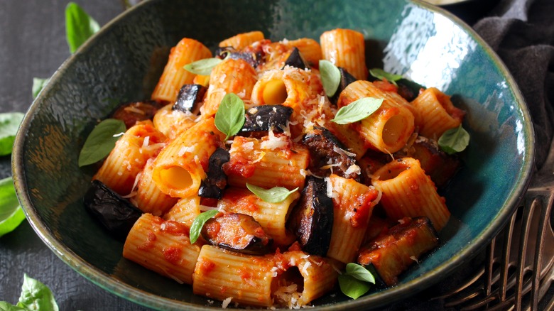 Look at any list of famous Sicilian foods, and you'll see a thread of usual suspects like cannoli, caponata, arancini, and involtini. However, this list wouldn't be complete without pasta alla Norma. This simple pasta brings together all of the island's most prized ingredients and mixes them into one delicious dish. However, there is one ingredient in pasta alla Norma that stands out for its cultural, and culinary, significance.