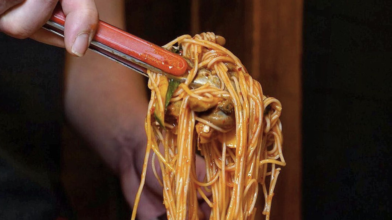 The Yuzu Chicken noodle soup at Her Name is Han is made with knife-cut noodles and house-made broth, aiming to approximate a classic Korean brothy chicken soup called kal-guksu, and is a popular lunchtime order. Meanwhile, the spicy blue crab over white rice is a showstopper. The marinated crab comes raw in its shell and covered in spicy gochujang, and you need to squeeze the crab meat out yourself, which oozes and bubbles on its way out. Unfortunately, this dish is only available seasonally, so make sure you check online before you go.