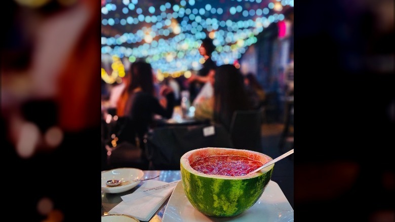 Pocha 32 is named for the fact that it's located on 32nd Street and offers food-cart-inspired fare. Once you escape the street and head upstairs to its large dining room, you find yourself transported — the dark walls are covered in messages written in colorful marker, and the ceiling is obscured by a net hanging with string lights and the colorful discarded caps of bottles drunk by previous customers. This place has wonderful food — its budae jjigae is a popular nightcap — but it is also notable for its inventive, large cocktails. One of the best things to order here is an extremely Instagram-able cocktail made with soju and served in a hollowed-out watermelon.