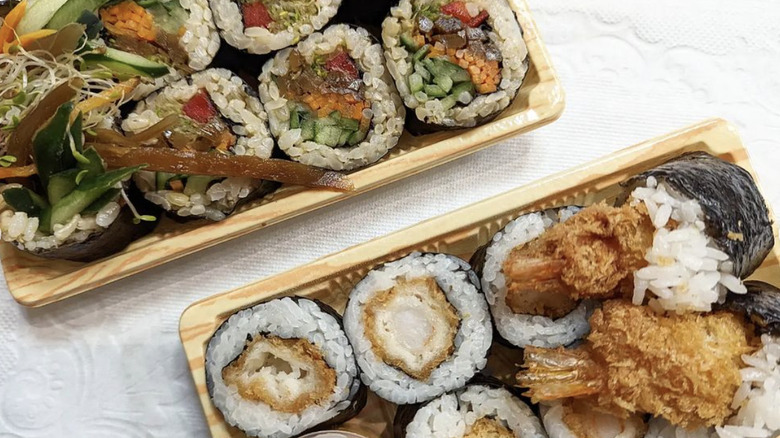 Inside, prepackaged meals and sides are stacked in neat rows on racks lining the walls, with a few tables clustered in the front and the back where you can sit and eat your casual Korean home-cooked meal. The best part? There isn't a single dish that costs over $10 in the whole store. In fact, most options are less, at least at the time of publication. Plus, to ease any stressed-out buyers, there are signs hung up next to each stack of containers informing you when the dish was cooked, and when it will be discarded by.