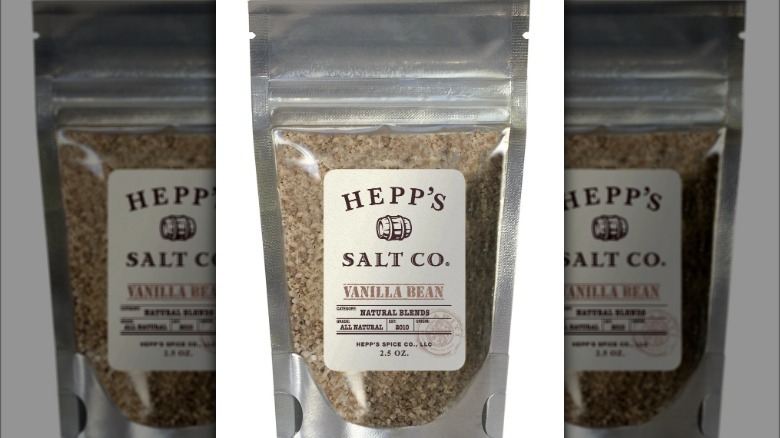 While you may be able to find vanilla sugar at your local grocery store, you're not going to find vanilla salt everywhere. Vanilla salt can be purchased from a number of specialty spice companies, like Hepp's Salt Co, which sells a 2-ounce jar for $8.25. Beanilla offers their Vanilla Fleur de Sel in a 3.5-ounce jar for $16.54. You can also find artisan vanilla salt on Flour & Herbs, which sells a Bourbon Vanilla Sea Salt in a 3.5-ounce jar for $12.99. Amazon lists several producers of vanilla salt, with prices that range from roughly $3 to $6 per ounce.