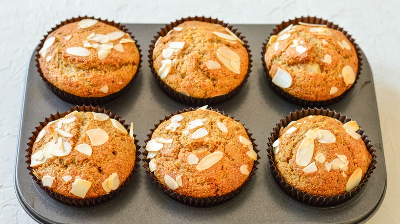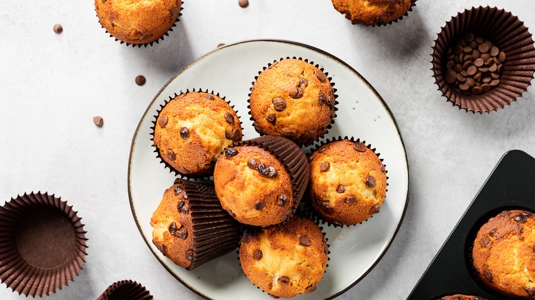 One of the worst mistakes you can make when baking anything — whether it's cookies, cakes, or muffins — is neglecting to preheat your oven first. Preheating is a vital cooking step because it promotes a more even rise in your muffins. You'll also have to cook your muffins longer than listed on your recipe, which can cause further textural issues. First, preheat your oven to about 75 degrees Fahrenheit more than your recipe suggests. This will accommodate you opening and closing the door of your oven. Then, once you're ready to put your muffins in, dial the temperature back down to the listed temperature.