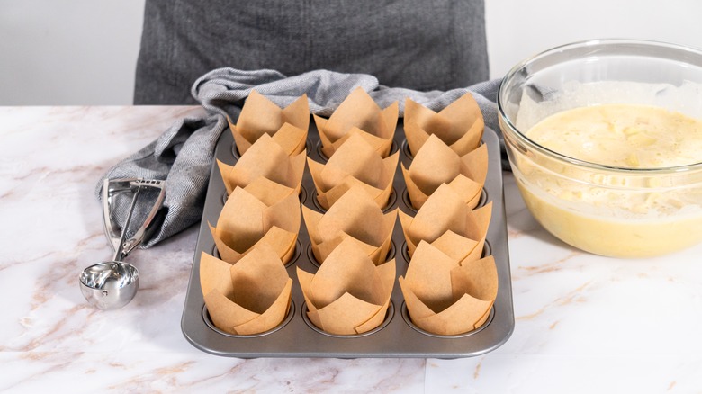 There are some tools you need to have in the kitchen to improve your baking experience. Some of them include a good mixing bowl, spatulas, and a trusty wooden spoon. We think that adding an ice cream (or in some cases, a cookie scoop) to your list of baking essentials is a good idea because it will help you accurately transfer the batter from the bowl to the muffin tin. You can scrape the top of the scoop off to ensure that you are getting precisely the same amount of batter in each tin — and it will likely be less messy than precariously holding the bowl and hoping the batter is going in the tin rather than on the top of the tray.