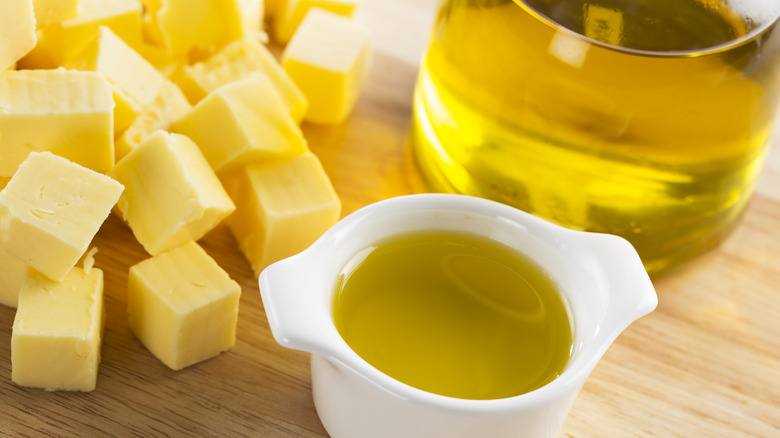 Then the question becomes, should you use oil or butter for a muffin recipe? Butter will result in a significantly better flavor than oil, but since it is not made of 100% fat, it will produce a slightly denser muffin. Oil muffins will also not go stale as quickly. So the logical answer here is to use a little bit of both oil and butter for the best muffin.