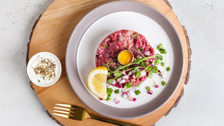 Spanish cuisine uses tartar sauce as an accompaniment to meat pudding (pudín de carne). Like its American cousin, meatloaf, pudín de carne uses minced beef, eggs, onions, and carrots to create a savory loaf. Spaniards also pair tartar sauce with salmon-stuffed lettuce, a cold starter perfect for the country's hot weather. But perhaps no country has innovated more with tartar sauce than the land of its birth — France. Starting in the 19th century, French chefs paired steak tartare with tartar sauce. Nowadays, they use it to finish off lamb burgers and pork cheek sandwiches.