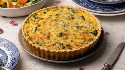 Although the precise creation story of the humble quiche is seemingly unknown, this savory dish has been written about for centuries and enjoyed all across Europe and America. Quiche is a wonderfully versatile dish that can be served either hot or cold, as lunch, dinner, or a snack. It makes the perfect picnic, barbecue, or party dish, which might be, in part, why it is so loved. It has undoubtedly earned its place at the table and we think it is the perfect choice for a royal celebration. Read on to find out how to make the coronation quiche at home with our recipe adapted by British recipe developer Jennine Rye.