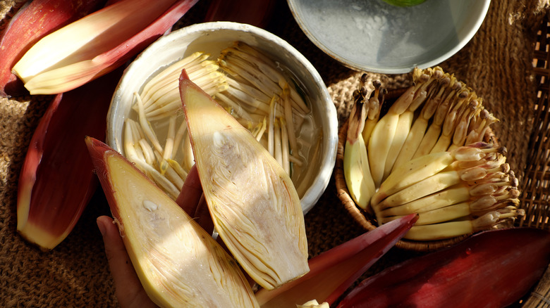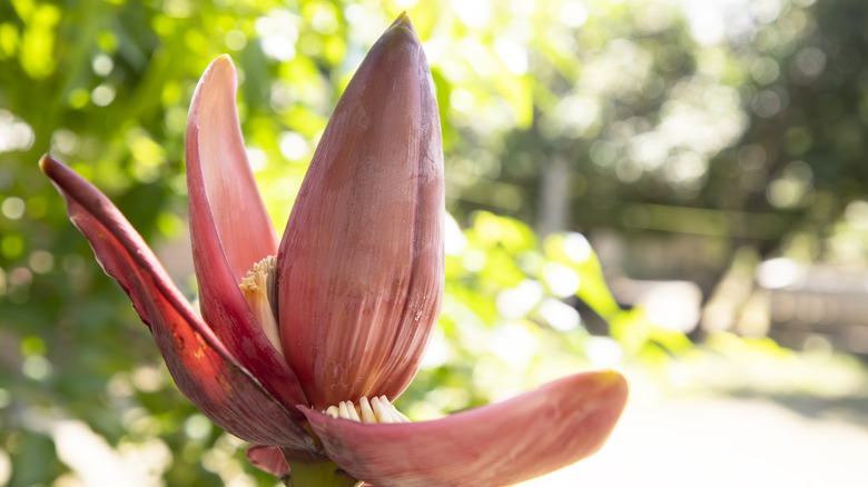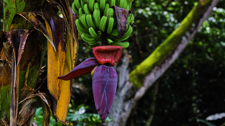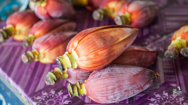 What's your favorite fruit? Whether you prefer biting into crisp apples, enjoying juicy oranges, or slicing up bananas, there is more to love than just the fruit itself. Many fruiting trees produce edible flowers that often go overlooked. Apples, oranges, and more of your go-to healthy snacks have tasty blossoms that work great as garnishes or are turned into tea. However, the banana flower is different from many of the other fruits' flowers. While several fruit blossoms are small and dainty, the banana flower is large, sturdy, and surprisingly delicious when prepared correctly.