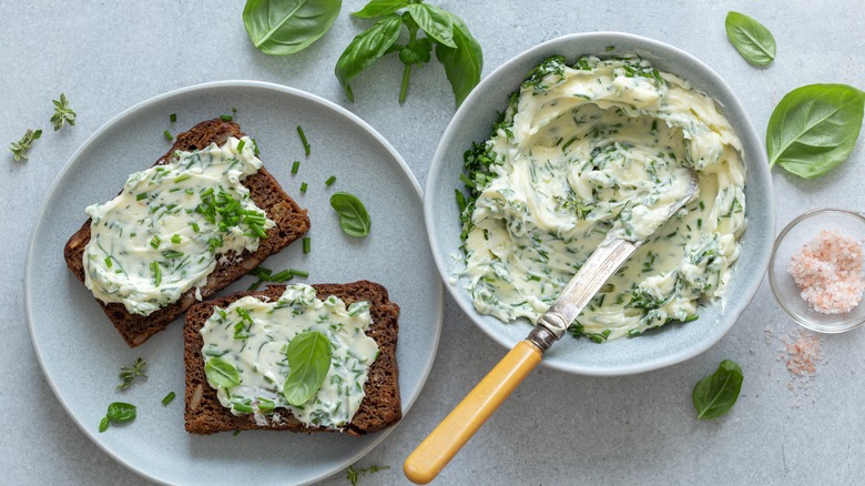 Carefully placed layers of this herby spread can offer just the right amount of flavor and textural depth to any sandwich recipe, and diners can still pick up the sandwich without worrying about dirtying their fingers. Don't feel you have to stick to obvious choices though. Experiment with the creamy coating you use on the outside of your sandwich and get creative with the fresh herbs or crunchy dippings. For a crunchy, flavorful addition of spice, consider toasting sesame seeds and making your own za'atar spice blend to dip hummus-covered sandwiches into. No matter the flavor or cuisines you pull on, the combination of a creamy spread and a crunchy herb or spice will be sure to satisfy.