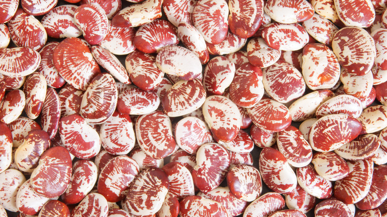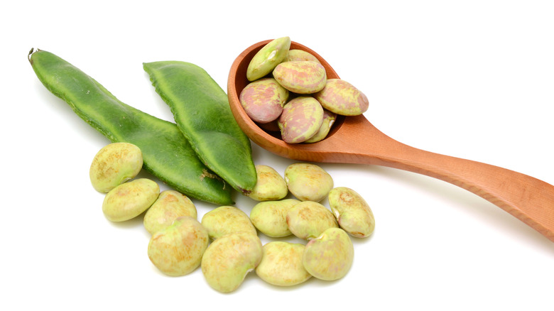 The most common lima beans you'll come across at the grocery store are white, pale green, or light tan colored, but that isn't the only color of lima bean out there. There are numerous varietals of lima beans that come in a painter's palate of hues, from white-speckled maroon to aubergine-striped buff. While taste and flavor will generally stay the same, it's worth knowing several popular ones and their culinary specialties.