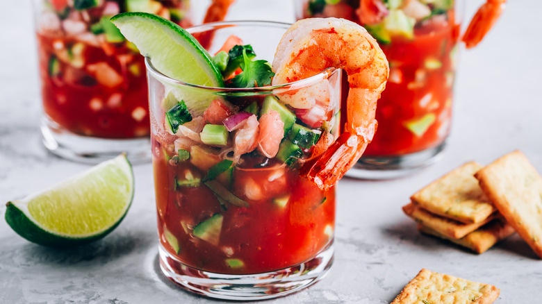 A mainstay on both seafood and steakhouse menus, shrimp cocktail is a timeless cocktail that's easy enough to prepare in your own kitchen. While the throwback dish may be simple to make, according to Blais, a plain old water bath just won't do for your shellfish.