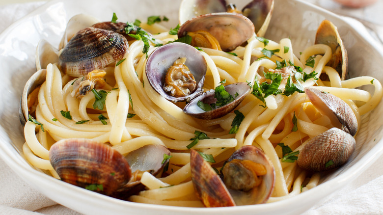 Italian matriarchs might roll in their graves, but that's not a good reason to skip out on the "sweet-salty" flavor that cheese can offer when you're preparing your favorite linguini and clams, says Blais. "If you want to shave some parmesan on it, you do you," the chef affirms. "I know that there's this longstanding debate on whether you should add cheese to seafood pasta dishes, but I'm all for it."