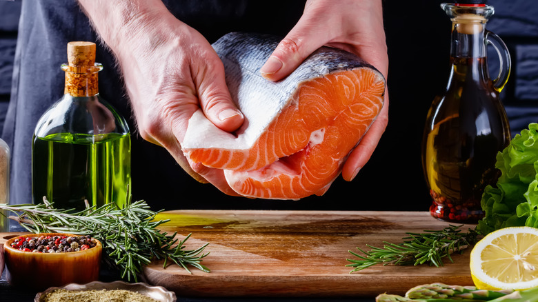 The aroma of quality fish, on the other hand, is less straightforward. To identify the good stuff, Blais notes that you may need to unlearn something you've taken for granted — the idea that "seafood [should] smell fishy." In fact, that's a red flag. A fresh fish, according to the celebrity chef, will smell like "the sea, like salt water, and cucumber."