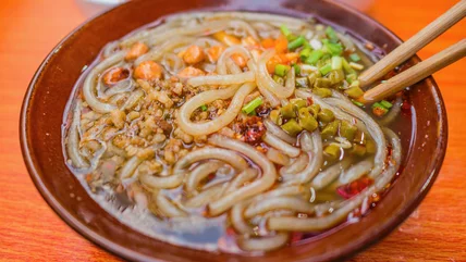 This dish is not to be confused with the other Sichuan-style soup known as hot and sour soup. Rather than featuring soft tofu, hearty mushrooms, and crisp bamboo shoots, suan la fen features a fiery soup base mix and its famous sweet potato noodles, along with fresh garnishes. Its long history and prevalence in the Sichuan region have made it a staple dish of this muggy province, although it's not well-known outside the country.