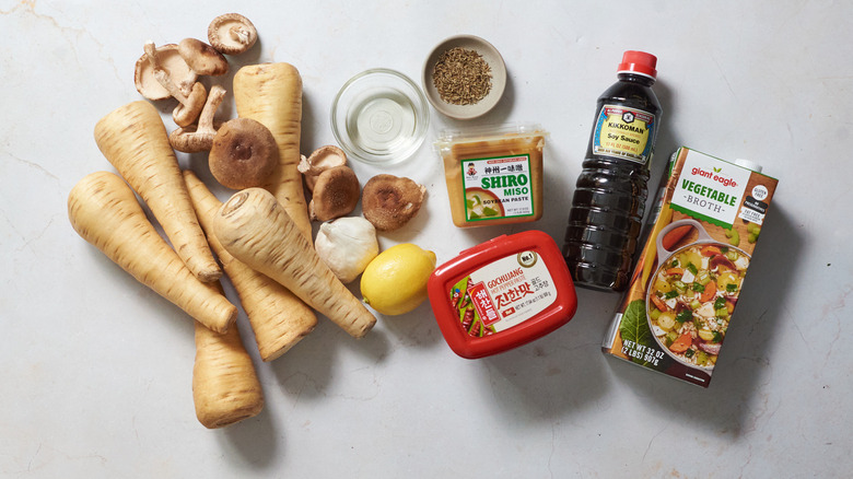 Gather the ingredients for miso-braised parsnips