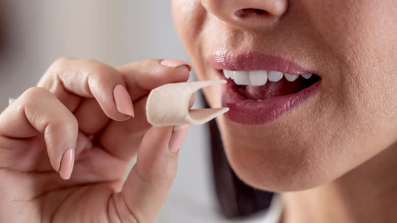 However, you may never have thought to check the labels on packets of chewing gum — as some sticks may sneak in a little dairy, making them decidedly non-vegan. And if you didn't know the ingredient specifically, you may not have even recognized it as a milk product. Some brands of chewing gum contain Recaldent, also called casein. Its long name is CPP-ACP, or casein phosphopeptide-amorphous calcium phosphate, so it's understandably shortened on most product labels. And, like whey, since it's a protein derived from cow's milk, it is technically a dairy product.