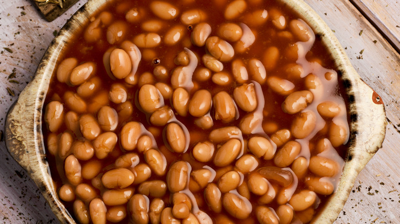Now, what does that mean when it comes to canned baked beans? Liquid smoke is an ingredient everyone should have in the kitchen because it can add some deliciously smoky flavors to almost anything. It doesn't take much, either — this is one ingredient where less is more — and it'll help turn those boring old canned beans into something reminiscent of Memphis-style baked beans.