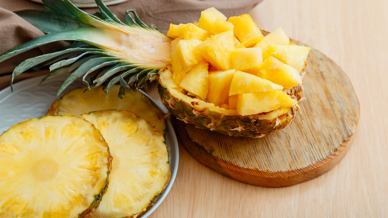Putting pineapple on pizza might be the sort of thing that causes fights to break out, but even those who condemn the idea will love the sweetness that this polarizing fruit brings to baked beans. If you're looking to add some pizazz to canned baked beans that are lacking in the distinctive sweetness that makes this side dish popular in the first place, slice up some chunks and even add some of the juice from a can — because, let's be honest, if you're reaching for the canned baked beans, you're not going to want to spend all that time cutting up a fresh pineapple.