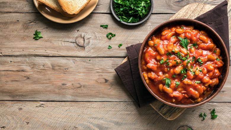 Boston baked beans might be the most famous of the varieties of baked beans, but there's another one that you can use as some serious inspiration for turning canned baked beans from something so-so to something delicious. We're talking about Tex-Mex baked beans, and although they're traditionally made with pinto instead of white beans, you can definitely channel their spirit when you're looking for a creative way to overhaul a boring can of beans.