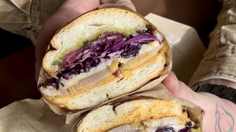 A traditional cold-cut sandwich is a literal mouthful jammed with pepperoni, finocchiona, mortadella, pepperonata, provolone, lettuce, tomato, pepperoni, and mayonnaise. A vegan bahn mi borrows from the Vietnamese cultural sandwich and adds a dash of Chinese and Filipino influence with a Maggi seasoning (think soy sauce with a more concentrated flavor profile) and mayonnaise.