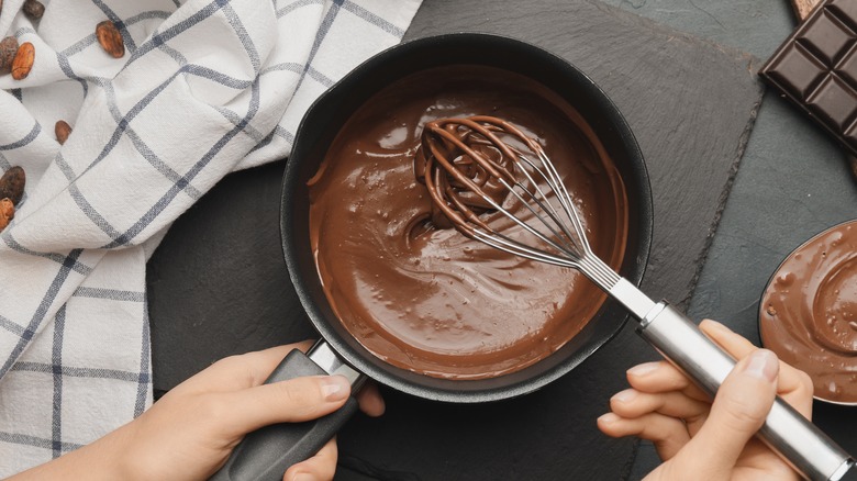 If you're a fan of making chocolate-covered strawberries at home, you probably know a thing or two about tempering dark chocolate — the process of melting blocks of chocolate for the fruit to be dipped into. And even though tempering chocolate involves precise steps of first heating, then cooling chocolate to specific temperatures, before warming it up again, there is an unscientific way chocolatiers use to determine whether the ingredient is ready to be used: this involves placing a dab of chocolate under the bottom lip, or on the inner part of the wrist to determine if it is ready. The method has been compared by chocolatier Christopher Curtin to testing the temperature of infant formula by placing a few drops on your wrist, per Food and Wine.