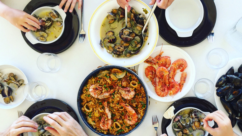 Sharing is caring — it's a phrase you might hear from fellow diners in favor of splitting dishes. And as with all clichés we still care to use, there's truth in it. Aside from the intimacy it can bring to a date or gathering of friends, it also allows you to sample more dishes without emptying your wallet. However, communal dining can also be complicated — requiring a certain level of compromise and consideration on the part of those partaking. However, there's one rule of etiquette that you should never forget when sharing a dish.