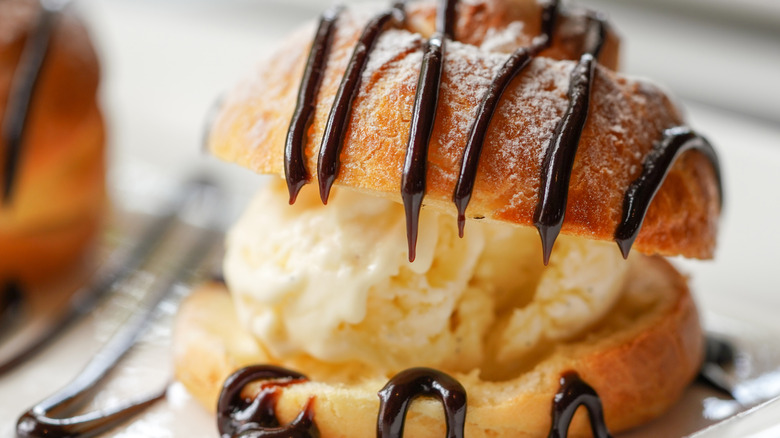 One quirk of the early Cheesecake Factory menu was that many of the dishes were named after people. This was a cute way for the original team to shout out friends and family, but of course, it meant you didn't get any clues about what the dish was from its name. It seems as though someone on staff named Adam liked ice cream, as Adam's Favorite was a cream puff stuffed with vanilla ice cream and topped with hot fudge and whipped cream. (Today, you'll find Adam's Peanut Butter Cup Fudge Ripple cheesecake on the menu.) Apparently, Cheesecake Factory founder David Overton liked this dish as well, because it was inspired by something he enjoyed as a kid. Per The Cheesecake Factory executives, "The Adam's Favorite hot fudge cream puff was similar to a cream puff David grew up eating at Sander's in Detroit."