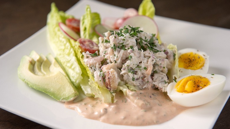 Louie is cooked, cooled seafood tossed in a mixture of mayonnaise, ketchup, pickle relish, olives, and onions, then served on lettuce leaves. The exact ingredients in the salad and dressing can vary slightly, but the mayo, ketchup, relish, and lettuce remain constant. It's super old-school — can you imagine a hip, modern seafood restaurant serving crab tossed in what basically amounts to gussied-up Thousand Island dressing? The Cheesecake Factory has modernized its seafood menu and no longer has room for crab Louie, but we bet it tasted great, as sacrilegious as the mixing of crab and ketchup might feel to us.