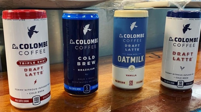 Philadelphia-based La Colombe launched its first canned coffee product in 2016, so it's newer to the market than some of the most famous namesc but has quickly become a favorite because of its taste and quality. La Colombe brings draft cold brew to the canned coffee market by means of a pressurized valve, so when you open a can of La Colombe, the hissing sound alerts you that you're in for something special. There's a creaminess and texture to La Colombe that's unlike anything else — except perhaps for draft beer. La Colombe even manages to have a frothy head when poured straight out of the can. The texture alone would make the brand a standout, but it also delivers on taste.