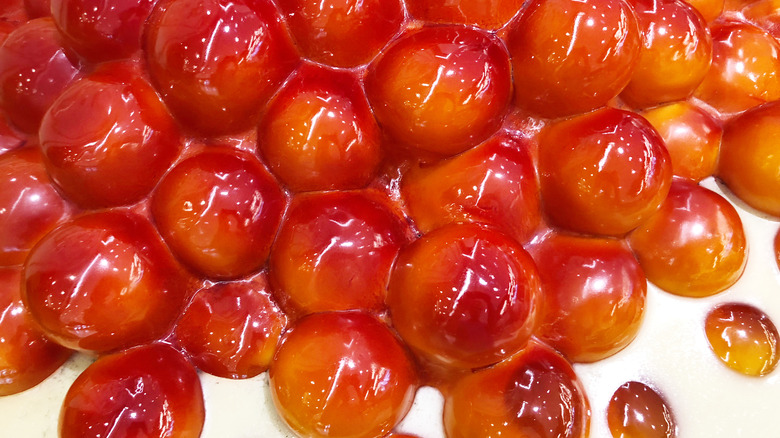 Boba pearls, which are chewy orbs of tapioca, can be found bobbing around in everything from bubble tea to decorative, contemporary cocktails. With an ultra-unique texture, the inky (but, occasionally, translucent) spheres make even the dullest of drinks and dishes more enticing. While they can be a welcome addition to virtually anything, this is partially because they tend to lack any real flavor of their own. Luckily, this is what makes the virtually tasteless boba pearls open to endless modifications — cue the leftover wine.