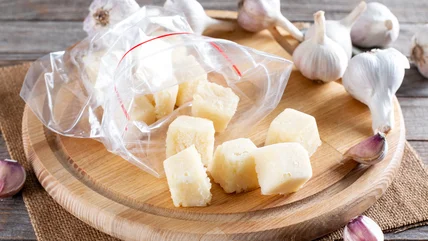 This convenient ingredient is typically made by crushing, chopping, or pureeing garlic and then freezing it into pre-measured portions. When you need a clove or two for your garlic butter or garlic chicken lo mein, simply push out the appropriate amount of these garlic cubes into your cooking vessel of choice, and you are in business. The value of having this ingredient ready to use is pretty high, especially if you want to keep your hands from reeking of its pungent smell.