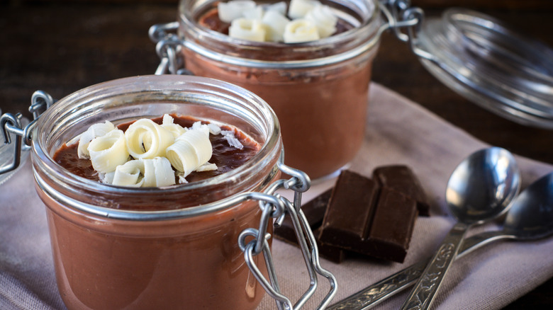 There are many different varieties of chocolate pudding. Some are thickened with starch, while others — like French pot de creme — use egg yolks as the thickener. Chocolate pudding is faultless when enjoyed plain or can be enhanced with a light touch of mint, orange, or raspberry flavor. It also mixes well with spicier flavors like cayenne, chipotle, or cinnamon. Its dark color also contrasts nicely when it's layered with vanilla pudding or whipped cream in a parfait. Chocolate pudding can be served on its own, or it can be used as a filling for a decadent chocolate creme pie. Chocolate pudding makes a great frozen treat, too — just pour the pudding into molds and pop it in the freezer for chocolate pudding pops.