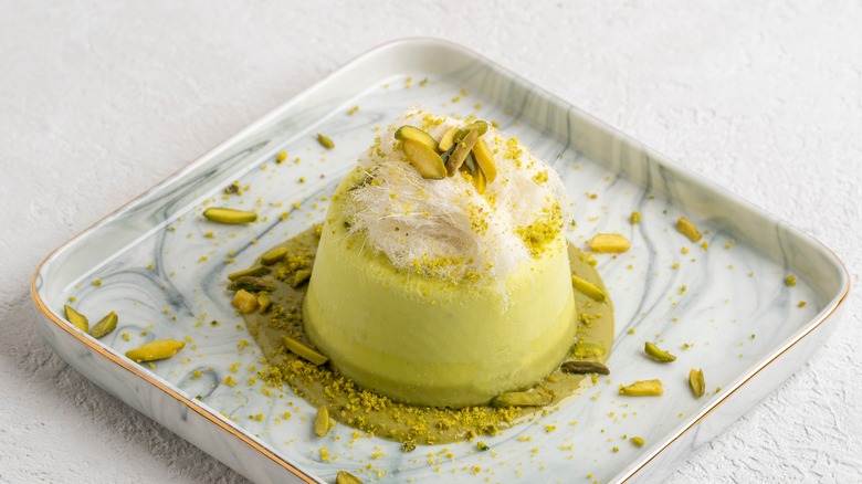 Although it might be best known as a boxed pudding mix in the U.S., homemade pistachio pudding is absolutely worth the extra effort. Pistachio pudding's appealing soft yet vibrant green color comes from the natural color of pistachio nuts, which are finely ground before they're added to a classic cooked pudding. You can choose to leave it perfectly smooth or include some roughly chopped pistachios or almonds for a bit of textural interest.