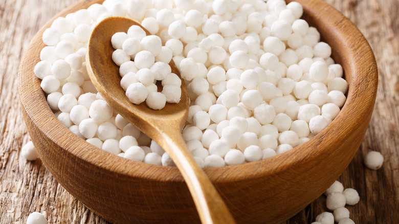 Another ingredient that thickens as it flavors is tapioca pearls. Tapioca pearls are translucent, edible spheres made from balls of starch from the cassava root. They come in a range of sizes from one to eight millimeters. They are gluten-free and vegan, which makes them an appealing choice for those on restricted diets. Tapioca pudding is similar in texture and flavor to rice pudding, but it has slightly fewer calories and fat than rice pudding.