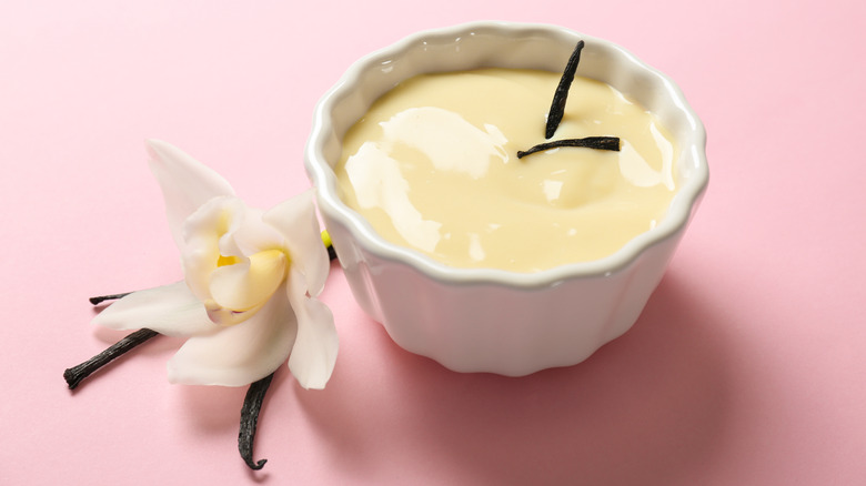 Without a natural thickener like rice or avocado, vanilla puddings must use an added thickener such as eggs or cornstarch. They are also cooked — usually by boiling or steaming – rather than chilled to set. Use vanilla extract as a flavoring for your cooked pudding for an understated and satisfying dessert. You can also opt for vanilla bean paste or scraped whole vanilla beans to amp up the vanilla levels and add a more sophisticated finish. Vanilla bean seeds add visual interest to plain cream-colored pudding and a slightly grainy texture as well. Vanilla bean works best when it's kept simple, but you can also top it with almost anything: fruit, nuts, whipped cream, cookies, or candies.