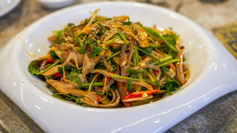 There's no shortage of things to love when it comes to tofu skin noodles — they're simultaneously chewy, slurpy, vegan, but best of all, simple. Sold in the form of thin, stacked or rolled sheets, tofu skin can be transformed into noodles in a matter of seconds with a few quick slices. Considering the fact that tofu is sold pre-cooked, all tofu skin noodles need is a quick blanch under boiling water to achieve the perfect texture and flavor.