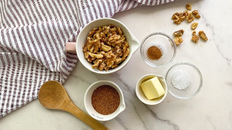Gather the ingredients for simple candied walnuts