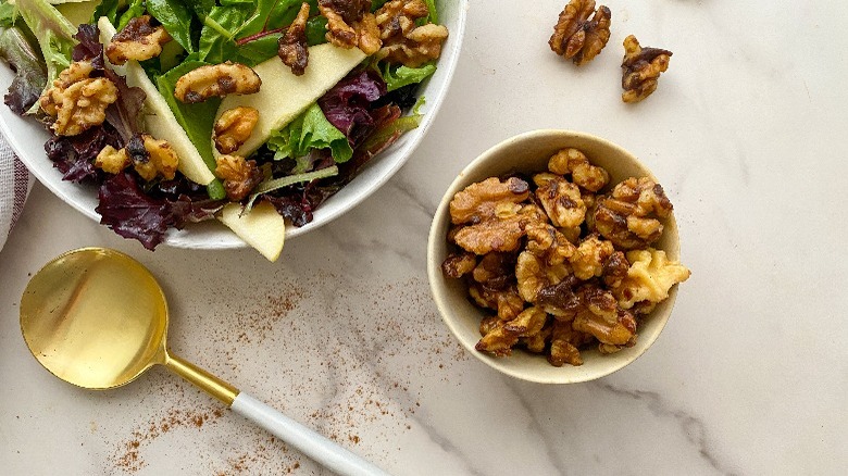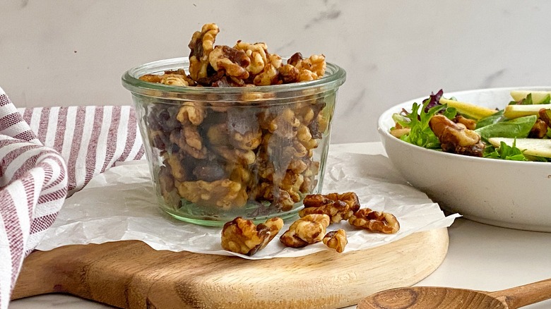 These simple candied walnuts make for a tasty snack or salad topper.