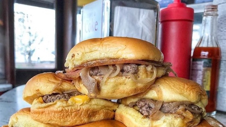 Do sliders belong on a "best burgers" list? If they're from White Manna, they certainly do. Not to be confused with the Jersey City eatery of the (nearly) same name, White Manna in Hackensack, New Jersey has been serving up classic sliders since 1946. It's situated beside the Hackensack River in an ancient, tiny diner car lined with chrome and red siding. The lunch counter wraps around the "kitchen," where an expert grill man plays the role of host, waiter, expeditor, and, of course, cook. Watch in awe as he directs customers, takes orders, and handles cooking 10, 20, 30 burgers at a time, making space on the hot griddle for the pre-portioned patties and their requisite buns. At some point between squeezing your way into the packed crowd, getting your order off, and trying to find one of the few seats available, you realize not standing in at a dingy little lunch counter watching someone fry a bunch of meat; you're watching food service excellence and efficiency at its absolute peak.